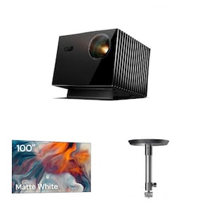 Tipo de produto: Kit de projetor a laser 4K com tela fixa e suporte de teto ajustável