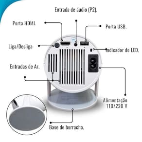Projetor 4K Portátil Led Multimídia Espelhamento Branco