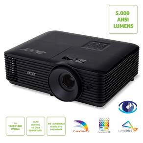 Projetor Acer X1328WH WUXGA (1920 x 1200) 5000 ANSI Lumens HDMI VGA RCA USB 100-240V : O projetor Acer X1328WH Oferece recursos incríveis para quem procura mais qualidade, nitidez e um ótimo contraste na hora da projeção. É ideal para usar no trabalho, na sala de aula e até mesmo para ver filmes em casa, com imagens em alta resolução e preparado para conteúdo em 3D. Clareza Máxima Na hora de apresentar seus materiais, as resoluções mínima nativa (Wide Extended Graphics array) 1280 x 800 e máxima WUXGA de 1920 x 1200 pixels não te deixam na mão. As imagens saltam da tela, com detalhes incríveis. Nitidez Mesmo em ambientes mais claros, você consegue projetar sem perder qualidade. Isso é possível com o brilho de 5.000 ANSI Lumens, um dos maiores da categoria. Tela de Cinema em Casa Com projeção Chip DLP, tecnologia que oferece altas taxas de contraste e minimiza as lacunas entre os pixels para imagens nítidas e brilhantes, a única coisa que você precisa fazer é preparar a pipoca e apagar as luzes.