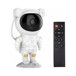 Este divertido projetor de luz é o item ideal para iluminar o seu ambiente ou para presentear alguém especial. Ele tem o formato de astronauta e projeta imagens de estrelas e nebulosas de forma nítida. O projetor acompanha controle remoto, que permite o comando à distância, e também tem temporizador de 45 ou 90 minutos, para você descansar com a tranquilidade sabendo que no momento escolhido o projetor vai desligar automaticamente. É possível, ainda, ajustar o ângulo da projeção porque a cabeça do astronauta se conecta ao corpo através de imãs que permitem essa mobilidade. A base de lua é destacável e os braços podem se mover verticalmente, pra você personalizar o seu astronauta do seu jeitinho.