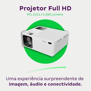Reinvente a maneira de apresentar seus conteúdos com o Projetor PFL5211. Possui resolução Full HD proporcionando uma imagem com excelente qualidade e definição. Realize suas apresentações sem o uso de cabos através do compartilhamento de tela sem fio. Projete grande, com até 200” polegadas de imagem.