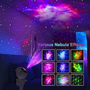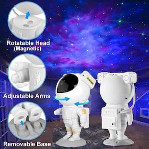Projetor de luz de estrela e galáxia para quarto, luz noturna estrelada com alto-falante de música, controle de voz Aplicações amplas: Pode ser uma boa lâmpada de ambiente de quarto e também é ótima para adicionar atmosfera a festas em casa, festivais, aniversários, bailes de dança, raves, etc. Um presente incrível para adultos e crianças. Ornamento bonito: O projetor de estrela e nebulosa foi projetado para se parecer com um astronauta, o que o torna não apenas um projetor de estrela da galáxia, mas também um ornamento decorativo bonito. Controle remoto: Você pode usar o controle remoto para ligar/desligar a lâmpada, ajustar o brilho e a velocidade, alternar os modos de luz, definir o timer 45min /90min , etc. Botões na lâmpada também podem controlar a luz. Alimentação USB: Alimentado por um cabo de alimentação USB, não há necessidade de se preocupar em ficar sem bateria . Com ângulo de projeção ajustável, pode projetar a cena no teto ou na parede.