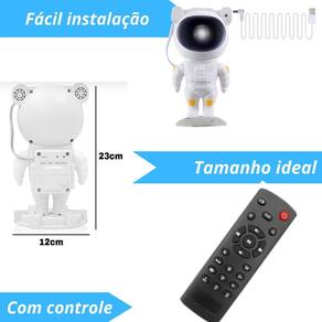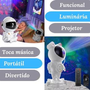 Tecnologia de iluminação led proporcionando uma luz suave e aconchegante Design de astronauta que adiciona um toque de diversão ao ambiente Estrutura em plástico abs resistente e durável Conexão usb para reprodução de músicas Altura de 23.4 e largura de 12, adaptável a diferentes espaços