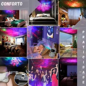 Qual é o tipo de conexão para reprodução de músicas R: a luminária possui conexão usb para reprodução diretamente do seu dispositivo. Como ajustar a projeção da nebulosa R: o controle remoto permite ajustar padrões, brilho e velocidade de rotação para personalizar o efeito de projeção. É possível utilizar o projetor em diferentes tipos de ambiente R: sim, o projetor é ideal para quartos, salas de jogos, home theater, entre outros, proporcionando um ambiente relaxante com luzes estelares. Qual é a voltagem suportada pelo produto R: o produto suporta voltagem de 110v/220v. O que está incluído na embalagem R: a embalagem inclui a lâmpada de projeção de astronauta, cabo de alimentação, controle remoto e manual de instruções. Homologação Anatel: 112572013224 Marca: AL