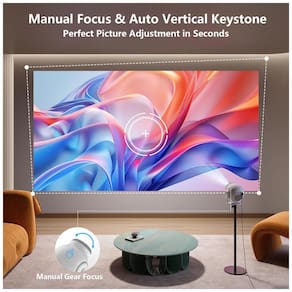 Conta com foco manual, correção automática vertical de keystone e ajuste horizontal ±15°, WiFi 6 dual-band para streaming estável e Bluetooth 5.4 para pareamento com caixas, soundbars ou fones. Brilho de 450 ANSI lumens e contraste 2000:1 para imagens claras em ambientes domésticos, com vida útil da fonte de luz de 50.000 horas.