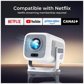 Indicado para home cinema ou cinema ao ar livre, possui Play Store com mais de 10.000 aplicativos e 800 canais gratuitos, operando com múltiplos formatos de vídeo incluindo H.264, H.265 e VP9.O Projetor Smart LYNCAST Netflix X3AA é um dispositivo portátil com resolução nativa Full HD 1920x1080 pixels e suporte a 4K. Serve para projeção de vídeos em ambientes internos ou externos, compatível com smartphones, laptops, tablets, consoles de jogos e alto-falantes via WiFi 6, Bluetooth 5.4 bidirecional, HDMI ou USB. Seus diferenciais incluem sistema Android 14 com apps oficiais Netflix, Prime Video e YouTube, foco automático com IA, correção keystone automática e de obstáculos.