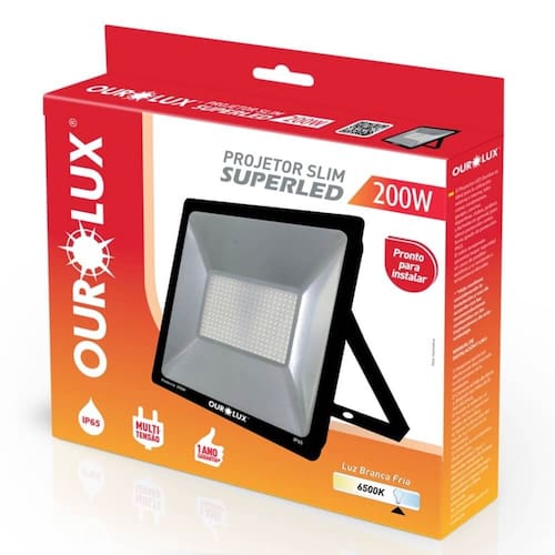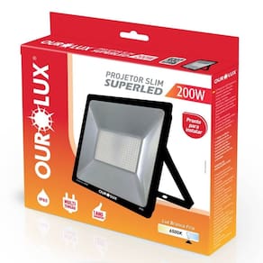 Projetor SuperLed Slim Preto Bivolt de 200 Watts e 6500K - 03269 - OUROLUX