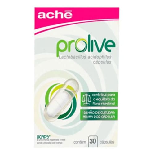 Prolive C/30 Cápsulas são o probióticos em cápsula com a tecnologia exclusiva LICAPS®, que contém em sua composição o Lactobacillus acidophilus. A ingestão de Prolive contribui para o equilíbrio da microbiota (flora) intestinal, e deve estar associada a uma dieta equilibrada e hábitos de vida saudáveis.
