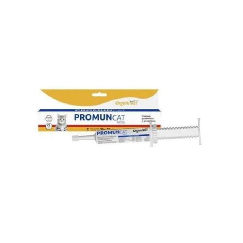 Promun Cat Pasta Organnact - 30 GrPromun cat pasta é um suplemento vitamínico (a, e, c), mineral (zinco), aminoácidos (essenciais, incluindo taurina), contendo probiótico e prebiótico, indicado para felinos. Mananoligossacarídeos: trabalhos recentes constataram que o mos possui a capacidade de alteração benéfica da microbiota intestinal e/ou de sua atividade metabólica e diminuição na produção de subprodutos da fermentação protéica. Além disso, existem relatos de efeito sobre o sistema imune deste prebiótico, principalmente o aumento das populações de linfócitos t e linfócitos b. Glutamina: é preferencialmente utilizada por enterócitos como fonte de energia e pode ajudar a promover a saúde do intestino delgado. Além disso, é utilizada como uma fonte de energia por células do sistema imunológico.Indicação do produtoSuplemento vitamínico mineral aminoácido indicado para felinos de todas as idades, em qualquer fase da vida.Modo de usarFornecer diariamente via oral, conforme tabela abaixo:Filhotes: 2g / 1,8ml por dia.Crescimento: 3g / 2,7ml por dia.Adultos: 4g / 3,6ml por dia. Fabricante: organnactRegistro no ministério da agricultura, pecuária e abastecimento: pr 07905-03145