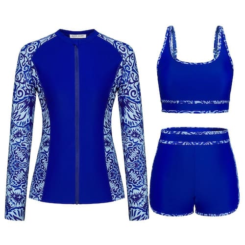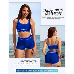 Kate Kasin 3 peças Rash Guard roupa de banho de manga comprida com zíper FPS 50+ proteção solar camisa de natação com boyshort de secagem rápida Fatos de banho femininos de 3 peças de qualidade premium: este traje de banho rash guard feminino inclui um top de natação de manga comprida, uma regata com um sutiã embutido e shorts de natação, proporcionando proteção completa e conforto para suas atividades aquáticas. A blusa de manga comprida é projetada com zíper frontal e gola redonda, enquanto a regata possui bainha elástica com gola em U e bojos removíveis para suporte adicional. O short de natação com cintura elástica garante um ajuste confortável e permite total amplitude de movimento. Excelente proteção solar: Feito de tecido de qualidade premium com proteção FPS 50+, este protetor de erupção cutânea para mulheres protege sua pele dos raios UV prejudiciais, tornando-o ideal para longas horas sob o sol. O material de secagem rápida mantém você seco e confortável, seja na praia ou na piscina. Conforto e estilo combinados: as alças de ombro ajustáveis e o material bem elástico garantem um ajuste perfeito para todos os tipos de corpo. Disponível em uma variedade de estampas florais e designs coloridos, este protetor rash guard para mulheres é elegante e funcional, o que o torna um item essencial para sua coleção de roupas de banho. Uso multiuso: se você estiver tomando banho, surfando ou desfrutando de outros esportes aquáticos, este maiô rashguard de 3 peças foi projetado para atender a todas as suas necessidades. O tecido de secagem rápida e respirável mantém você confortável durante suas atividades, enquanto o design moderno garante que você fique ótima em todos os momentos. Conteúdo da embalagem: 1 blusa de manga comprida, 1 regata e 1 short de natação - 3 peças Rash Guard femininas: nossos trajes de banho femininos incluem uma camisa de natação de manga comprida, uma regata com um sutiã removível embutido e um short de natação com controle de barriga de cintura alta, oferecendo proteção completa e conforto para suas atividades aquáticas - Fatos de banho de manga comprida para mulheres: as camisas rash guard de manga comprida são projetadas com zíper frontal e gola redonda, enquanto a regata possui bainha elástica com gola em U e almofadas removíveis no busto para maior suporte. Os shorts de cintura elástica garantem um ajuste confortável e permitem total amplitude de movimento - Excelente proteção solar UV: Feito de tecido premium com proteção FPS 50+, este maiô de manga comprida para mulheres protege sua pele contra erupções cutâneas, abrasões e raios UV prejudiciais, tornando-o ideal para longas horas sob o sol sem se preocupar com queimaduras solares. O material de secagem rápida mantém você seco e confortável durante suas atividades, enquanto o design moderno garante que você fique ótima em todos os momentos - Conforto encontra o estilo: as alças de ombro ajustáveis e o material bem elástico garantem um ajuste perfeito para todos os tipos de corpo. Disponível em uma variedade de estampas florais vívidas e designs coloridos, este protetor de rash guard para mulheres é elegante e funcional, o que o torna um item essencial para sua coleção de roupas de banho - Várias ocasiões: este maiô feminino de 3 peças permite que você misture e combine como quiser, oferecendo infinitas opções de estilo e atendendo a todas as suas necessidades. É perfeito para natação, banho, surfe, passeios na praia, mergulho, caiaque, snorkeling, wakeboard, golfe, rafting, paddle boarding, hidroginástica, aulas de ginástica, diversão aquática casual, ioga aquática, corrida, ciclismo, pesca ou outros esportes ao ar livre