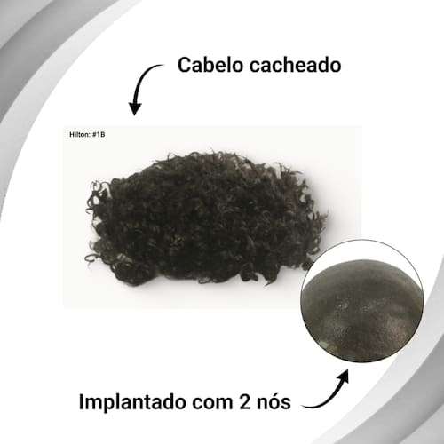A qualidade que você já conhece aliada a sofisticação e durabilidade, a prótese Hilton tem tudo isso e muito mais, essa peça vem com nó duplo garantindo maior durabilidade da peça, e micropele para aquele acabamento sofisticado e natural, garantindo cachos naturaisFicha técnica do produto Modelo: Hilton (Com Nó). Tamanho da base: 18cm x 23cm (Orelha a Orelha) x (Testa a nuca). Tamanho dos Fios: 15cm. Material da base: Micropele (Poliuretano). Naturalidade: Transparente.Espessura da Base: Pode haver variações de acordo com processo de fabricação entre 0,08mm a 0,10mm não sendo possível especificar após finalizado. Densidade de Fios: Pode haver variações de acordo com o processo de fabricação entre 120% a 130% não sendo possível especificar após finalizado. Atenção: As variações são margem de produção estipulada pelo fabricante, não sendo possível identificar qual é fina ou grossa. Tipo de cabelo: cabelo cacheado Material: Cabelos 100% Humano, descamado, tratado e tonalizado. Material dos Fios Brancos: Cabelos 100% Sintéticos (Prótese com branco, prótese Mistas; Sintético + Natural)Dicas para cuidar da sua prótese: 1- O produto chegou na sua casa, procure um profissional especializado em prótese para fazer a colocação e o corte da peça. 2- Faça suas manutenções periodicamente de 15 em 15 dias.