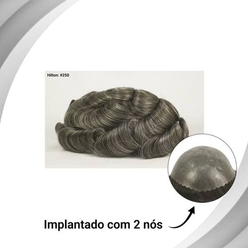 Prótese capilar masculina feita com fibra natural com frente + topo de tela sintética e