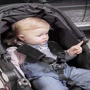 Os protetores vêm com espaços próprios para a passagem do cinto do carrinho de bebê ou cadeirinha para auto.