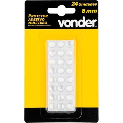 Marca: VonderConteúdo da embalagem: 1 Cartela com 24 peças.Destaques e diferenciais:Fabricado em PVC.Dicas de uso:Indicado para proteção de móveis, eletrônicos, entre outros. Contra riscos, batidas e deslizamentos. Ideal para apoio de tampos de vidro em mesas, para proteção de paredes em contato com maçanetas ou outros objetos, e para evitar o impacto entre duas superfícies gavetas, tampos, entre outros .Detalhes Técnicos:Formato do autoadesivo: Redondo Cor: Transparente Material: PVC Dimensões: Diâm. X esp.: 8 mm x 2,5 mm Ean: 7893946676766