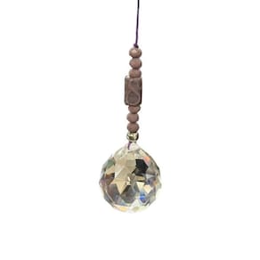 Cristal Facetado 40 mm transparente e 8 Contas de cristal 6 mm colorido para pendurar com argola e cordão de 33 cm.
