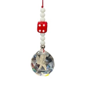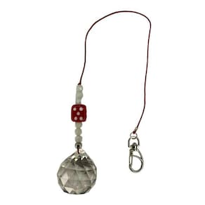 Cristal Facetado 40 mm transparente e 8 Contas de cristal 6 mm colorido para pendurar com argola e cordão de 33 cm.