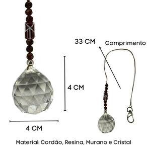 Cristal Facetado 40 mm transparente e 8 Contas de cristal 6 mm colorido para pendurar com argola e cordão de 33 cm.