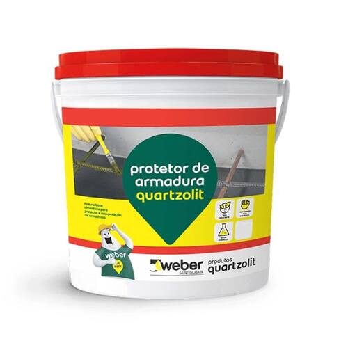 protetor de armadura quartzolit é uma pintura à base de polímeros e cimento Portland, monocomponente e de grande aderência destinada à proteção de armaduras dispostas nas regiões submetidas a atividades de reparos estruturais decorrentes do processo de corrosão. A proteção é proporcionada pela formação de uma camada inibidora e de baixa permeabilidade.