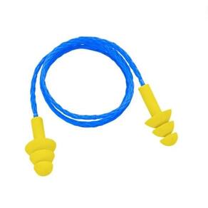 Protetor auditivo do tipo de inserção pré-moldado, confeccionado em silicone, em formato cônico, com três flanges concêntricas, de diâmetros variáveis.