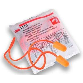 Protetor auditivo do tipo inserção moldável, confeccionado em espuma, em formato de cone, com a base plana e o topo arredondado, de forma a proporcionar maior conforto ao usuário. O protetor é disponível em tamanho único, sendo que a característica de ser moldável faz com que seja adaptável à maioria dos condutos auditivos. O modelo 3m 1110 possui cordão, ligando os dois protetores.