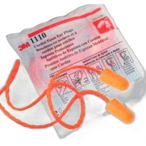 Protetor auditivo do tipo inserção moldável, confeccionado em espuma, em formato de cone, com a base plana e o topo arredondado, de forma a proporcionar maior conforto ao usuário. O protetor é disponível em tamanho único, sendo que a característica de ser moldável faz com que seja adaptável à maioria dos condutos auditivos. O modelo 3m 1110 possui cordão, ligando os dois protetores.