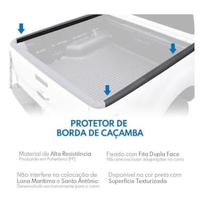 Fabricado em plástico polietileno, protege a borda da caçamba contra pequenas batidas, riscos ou manchas.