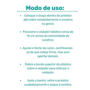O Protetor Probanho de Braço Infantil foi desenvolvido especialmente para manter curativos, gessos e imobilizações protegidos da água durante o banho. Fabricado em polietileno de alta densidade e vedador compressivo em poliéster com elastodieno, oferece proteção segura e confortável, impedindo a entrada de água e garantindo higiene e praticidade no dia a dia.