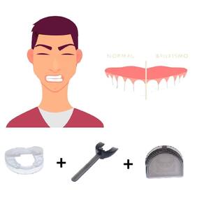 o único aparelho articulado e com a utilidade de 5em1 capaz de suprir todas suas necessidades e sem artefatos embutidos para união das partes superior e inferior, para não ter risco de ingerir. Placa moldável articulada para bruxismo, anti ronco, esportes leves, clarear dentes, moldável em usuário de aparelho. Confortável, oferece uma proteção total da arcada superior e inferior, não deixa morder a língua, laterais da bochecha e lábios, evita desgastes e quebra de dentes, lesões, queixo, mandíbula, dores de ouvido e zumbido relacionados ao bruxismo , maior proteção. Descrição