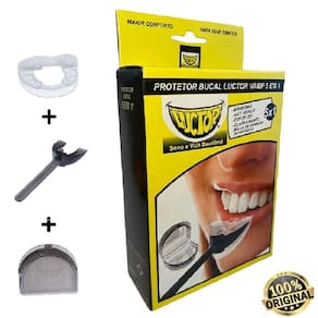 o único aparelho articulado e com a utilidade de 5em1 capaz de suprir todas suas necessidades e sem artefatos embutidos para união das partes superior e inferior, para não ter risco de ingerir. Placa moldável articulada para bruxismo, anti ronco, esportes leves, clarear dentes, moldável em usuário de aparelho. Confortável, oferece uma proteção total da arcada superior e inferior, não deixa morder a língua, laterais da bochecha e lábios, evita desgastes e quebra de dentes, lesões, queixo, mandíbula, dores de ouvido e zumbido relacionados ao bruxismo , maior proteção. Descrição