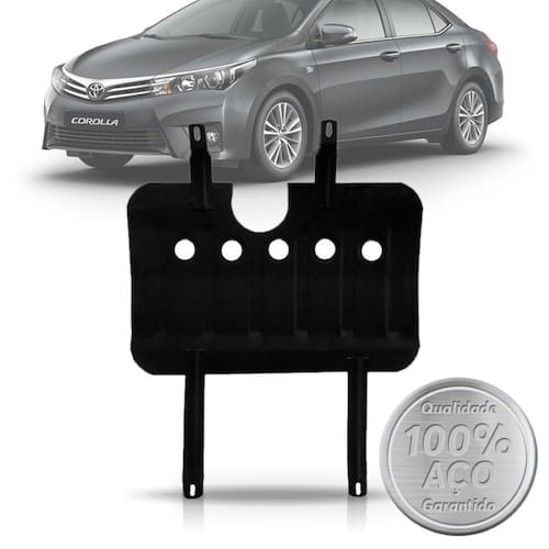 Características: de ótima qualidade. Fabricado em chapa de aço resistente. Encaixe e alinhamento perfeito. Cor preta. Furações arredondadas. Compatível com os modelos: Corolla 2015. Corolla 2016. Corolla 2017. Importante: de 3 meses. Não nos responsabilizamos por instalação mal realizada. A instalação deve ser feita por um profissional especializado. Marca: Não Informado
