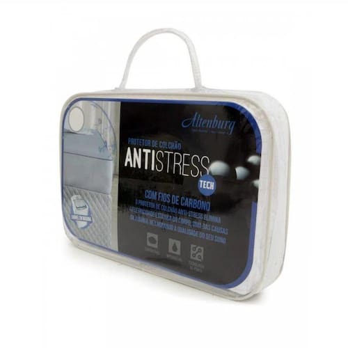 Protetor Colchão Altenburg Solteiro King Impermeável Branco A família Antistress aumentou e ganhou um novo membro: Protetor de Colchão Antistress Impermeável Solteiro King Através dos fios de carbono, o protetor de colchão antistress elimina a eletricidade estática do corpo, uma das causas da insônia, melhorando a qualidade do sono. O tecido superior em 100% poliésterproporciona máximo conforto para as horas de descanso. Características: Protetor de colchão com elástico impermeável Tecnologia Antistress Elimina a eletricidade estática do corpo Pode ser lavado em máquina Tamanho: 1,00m x 2,00m x 40cm Solteiro King Composição: Tecido Superior e Lateral 100% Poliéster e Tecido Inferior 100% Poliuretano Marca: Altenburg