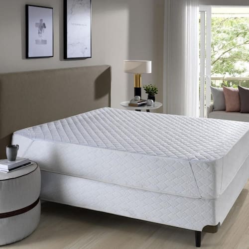 Descrição Protetor de Colchão Impermeável com elástico, e tecido superior 100% Poliéster. A proteção da impermeabilidade com a praticidade e aliada à leveza do tecido matelado, junto a qualidade dos produtos Bouton. O protetor protege contra ácaros, suor, umidade, poeira e atritos do dia a dia. Tecido superior tampo em malha e uma camada impermeável para proteção. Além de proteger, o protetor aumenta a vida útil do seu colchão. É ideal para toda família. Pode ser lavado em máquina Tamanho: Solteiro - 90cm x 190cm Cor: Branco Composição: Tecido Superior: 100% Poliéster Enchimento: 100% Poliéster Verso: 100% Polipropileno Atenção: Não possui proteção lateral Marca: Não Informado