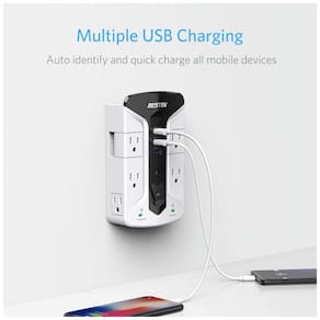 Este extensor de saída tem 7 saídas no total com capacidade de 1875W incluindo 2 saídas rotativas permite ângulos convenientes para conectar o equipamento sem interferir um com o outro e criar mais espaço para adaptadores grandes Integre com correspondência inteligente 3 0 2.4A, carregue todos os tipos de seus dispositivos com facilidade e rapidez. As 2 portas de correspondência inteligentes podem detectar automaticamente seus dispositivos e fornecer a eles a velocidade de carregamento mais eficiente e rápida Este protetor contra surtos de montagem na parede também oferece uma gama completa de proteção contra sobretensão, curto circuito e sobrecorrente. O invólucro retardante de fogo evita fogo aberto dentro de 750 Cenários Expandir O supressor de surto de montagem na parede de 900 joule protege os dispositivos contra raios e outros fatores de surto, especialmente adequado para PC, TV, geladeira, laptop, impressora, sistema de home theater, sistema de entretenimento Suporte de telefone na parte superior para melhor praticidade ao carregar seu smartphone LEDs protegidos e aterrados alertam o usuário sobre o status de funcionamento desta tomada USB Um parafuso para fixá lo estável na tomada de parede padrão Marca: Não Informado