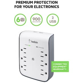 Protetor contra surtos de 6 saídas com montagem na parede com economia de espaço Duas portas USB 2.1A combinadas para carregar smartphones, tablets e muito mais Protege eletrônicos pessoais e pequenos eletrodomésticos contra picos de energia potencialmente prejudiciais Especificações Classificação de energia de 900 Watts, amperagem máxima de pico de 36.000 A Uso a operação correta é importante consulte a seção de descrição do produto abaixo para obter informações úteis de segurança Marca: Não Informado