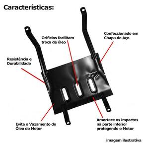 O protetor de cárter é o escudo que protege o cárter do motor. O cárter é o recipiente metálico onde fica acumulado o óleo do motor, responsável pela Lubrificação durante o seu funcionamento. Como está localizado na parte mais baixa do motor o cárter pode sofrer danos, mesmo pequenas batidas Podem ocasionar o vazamento de todo óleo do motor. Apesar de sua importância, o protetor de cárter é considerado só um acessório pelos fabricantes dos veículos E poucos saem de fábrica com ele. Protetor de Carter Chevrolet Celta 2000 a 2017. CARACTERÍSTICAS: - Confeccionado em Chapa de Aço - Modelo Específico para o Veículo - Fácil Troca de Óleo - Cor: Preto - Referência: 208p2 ITENS INCLUSOS: - Um 1 Protetor de cárter do modelo anunciado. - Um 1 Jogo de parafusos para fixação. DIMENSÕES - Comprimento: 79 cm - Largura: 46 cm - Altura: 15 cm - Espessura: 1,2 mm INSTALAÇÃO A instalação é feita de forma simples, podendo ser feita por você mesmo. de 30 dias para defeitos de fabricação. em até 3 dias úteis, em caso de boleto POLÍTICA DE TROCA Sempre estamos interessados em sua satisfação. Caso não receba o produto exatamente como no anúncio, com algum defeito ou no transporte, Você poderá trocar e devolver a qualquer momento, sem pressa, sem prazo e principalmente sem custos desde que o produto esteja sem uso e na mesma condição da data da compra . No caso de devolução por compra de tamanho errado, desistência ou mudança de intenção, Da mercadoria nova. Marca: Mega Acessórios