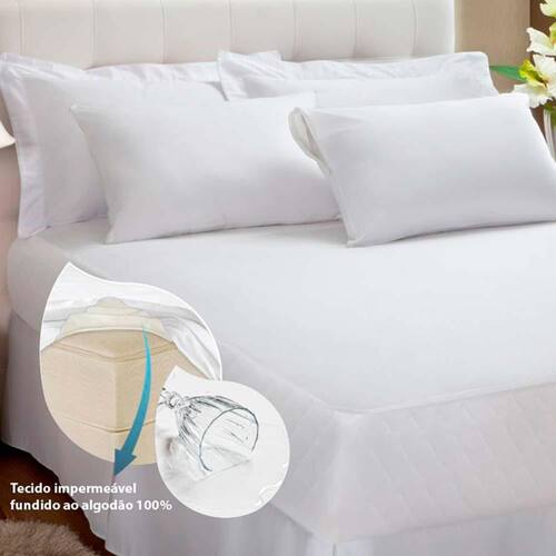 Protetor de colchão malha Impermeável. Possui tecido impermeável fundido ao tecido superior 100% algodão e tecido inferior 100% poliuretano. Impede a passagem de óleos e líquidos, tecido ultrafino e não esquenta. Fácil de lavar, não alergênico, ou seja, protege contra ácaros, fungos e bactérias. Acabamento em saia com elástico, protegendo também a lateral do colchão. Perfeito para proteger o seu colchão. Foto meramente ilustrativa.