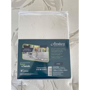 Protetor De Colchão Sono E Saude Impermeável King Altenburg O protetor de colchão Sono e Saúde possui ação antimicrobiana contra fungos, ácaros e bactérias. É impermeável e impede a passagem de água, óleos e líquidos para o colchão , mantendo limpo e com aparência de novo por muito mais tempo. Produzido com tecido semelhante ao do colchão em 100% poliéster, o Protetor de Colchão Sono e Saúde Slim é ideal para quem quer proteger o colchão sem interferir na aparência da cama. Fácil e prático de usar, possui ajuste perfeito ao colchão e pode ser lavado em máquina. Tecido Superior: 100% poliéster Tecido Inferior: 100% poliuretano. Medida: 1,93x2,03x40cm. - Impermeável: impede a passagem de água, óleos e líquidos para o colchão - Possui ajuste perfeito ao colchão - Pode ser lavado em máquina - Fácil e prático de usar' Cor: Branco Conteúdo da Embalagem: - 1 Protetor de Colchão King Cuidados com o Produto: - Lavar a 40°C - Não alvejar - Não secar em tambor - Não passar - Não lavar profissional Marca: Não Informado Ean: 7909202424450