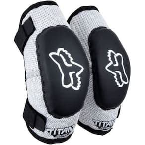 2012 Fox PEE Wee Titan Cotovelo Guardas (Preto/prata) - Plastic elbow and forearm coverage - Soft bio-foam chassis for comfort - Elastic strap system with hook and loop adjustment - Sold in pairs - One Size: ages 4-7