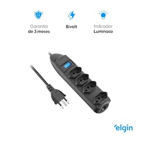 Protetor De Linha 4 Tomadas 2P +T Fusível Chave Liga/Desliga 1,5m