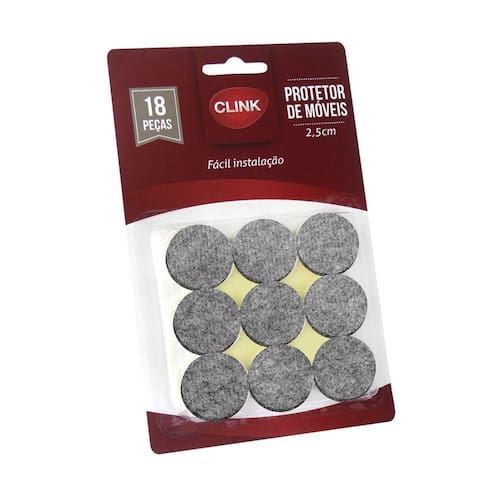 Protetor De Móveis Redondo De Feltro Com 18 Unidades Descritivo: Fixação rápida. Já vem com fita adesiva. Protege seus móveis, portas e janelas. Evita riscos no chão. Ideal para móveis em geral. Especificações: Dimensões: ø 2,5 cm Material: feltro Cor: cinza Ean: 7899850329446