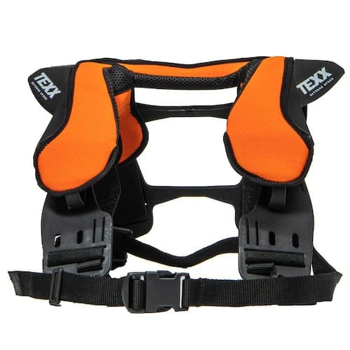 Protetor cervical com tecnologia evolution®; Formato inovador. Leve e resistente; Maximiza o conforto sem sacrificar a proteção; Protetor que distribui a energia do impacto em diversos pontos. Isto significa menor risco de lesões; Cintos de fácil regulagem que permitem encaixe mais rápido ao corpo; Não atrapalha movimentos do pescoço e cabeção; Mais leve do mercado; Não há necessidade de remoção do capacete para colocar o produto;