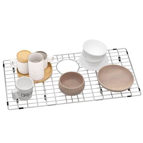 MIYUPTC Grade protetora de pia, pia de aço inoxidável de 72 cm C x 38 cm L, grades de pia de drenagem traseira, grades inferiores de pia grande, acessórios universais de pia para pia de cozinha - Comprimento 72 cm x largura 38,5 cm, diâmetro do orifício de drenagem traseiro: 13 cm; suporte de altura 2,5 cm. Meça o tamanho antes de comprar. - A grade de pia não apenas protege a pia da sua cozinha, mas também vem com uma variedade de acessórios para maior conveniência. Use-o para secar pratos, descongelar alimentos ou até mesmo como um rack de resfriamento. Melhore a funcionalidade do espaço de trabalho da sua cozinha com esta adição versátil! - Este rack de pia para fundo da pia é feito de aço inoxidável 304 durável, oferecendo excelente resistência contra corrosão e ferrugem. É projetado para facilitar a limpeza e desempenho duradouro. O acabamento superior adiciona um toque elegante, moderno e elegante à pia da sua cozinha. - Uma grelha de pia é a maneira mais simples de proteger sua pia de arranhões e danos causados por panelas, panelas, pratos, talheres, copos e muito mais. Com seu design de grade aberta, permite que a água drene livremente durante o uso. - Se você receber produtos rachados ou não estiver 100% satisfeito com nossos produtos, sinta-se à vontade para entrar em contato com nosso atendimento ao cliente. Forneceremos a melhor solução para você dentro de 24 horas.