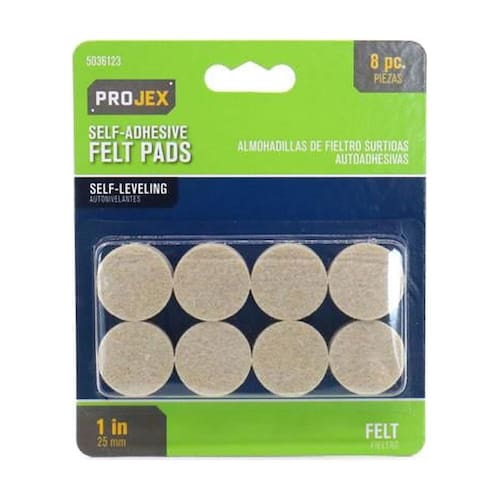 - Nome da marca: Projex Material: feltro autoadesivo: Sim Tipo de produto: almofada protetora Cor: branca Forma: redonda Largura: 1 pol. Número na embalagem: 8 unidades Tipo de embalagem: Cardada