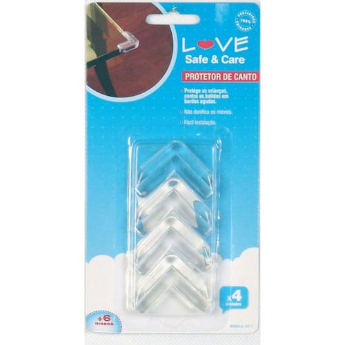 Contém 4 unidades (acompanha fita adesiva) Ideal para mesas de vidro Protege as crianças contra as batidas em bordas agudas Não danifica os móveis Fácil instalação