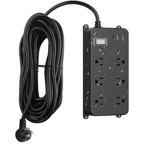 - Tomada elétrica externa: 1 porta USB-C, 2 portas USB e 6 tomadas CA fornecem energia e carregamento para até 9 dispositivos. Cabo extra longo de 7,6 m, cobre puro de 16 AWG. Plugue plano, design montável na parede.
