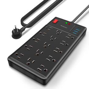?Faixa de alimentação de proteção múltipla com portas USB?- Este cabo longo de régua de alimentação possui proteção contra sobretensão de até 2800 joules para proteger seus componentes eletrônicos contra picos e flutuações. O interruptor liga/desliga também possui proteção contra sobrecarga, que detecta automaticamente cargas externas e desliga e desconecta toda a energia na primeira oportunidade, protegendo bem seu equipamento. Para evitar problemas com o circuito novamente, não exceda sua potência nominal de 1875 W antes de reinicializar.