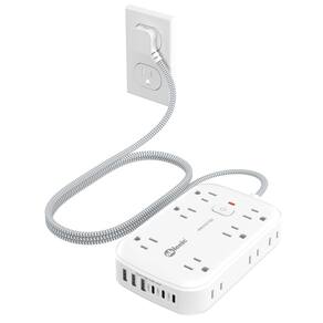 - Montável na parede e com cabo de extensão de plugue plano ultrafino: 2 orifícios de montagem na parte traseira podem facilmente garantir o protetor contra sobretensão em paredes, rodapés ou móveis. O plugue plano possui um perfil baixo que se encaixa facilmente em espaços apertados e fica escondido atrás de móveis. 5 pés de borracha na parte inferior evitam que ele escorregue e deslize. O cabo plano 16AWG de 5 pés é feito de cobre puro, que tem melhor capacidade de transporte de corrente (13A). O cabo de alimentação de tecido trançado não é fácil de deformar, é durável e mais seguro