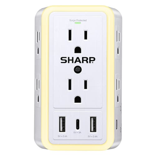O SHARP 9 EM UM POWER FOR ALL + NIGHTLIGHT é a melhor solução para todas as suas necessidades de energia. Este filtro de linha é projetado para oferecer a máxima conveniência e eficiência com sua funcionalidade 9 em 1. Com três portas USB de carregamento rápido (2 USB-A, 1 USB tipo C), você pode carregar facilmente vários dispositivos ao mesmo tempo. O filtro de linha também possui um design de 3 lados, que permite que você use todas as tomadas ao mesmo tempo sem se preocupar em não ter espaço para todos os seus blocos adaptadores de plugue grandes. O supressor de surtos de parede USB SHARP atua como um protetor contra picos de linha e tem seis tomadas bem espaçadas, oferecendo amplo espaço para conectar todos os seus dispositivos essenciais. As tomadas são projetadas para acomodar diferentes tamanhos de plugue, tornando-as ideais para uso com uma ampla variedade de eletrônicos e receptáculos. O filtro de linha também possui uma luz noturna LED inteligente, que ilumina seu espaço, facilitando a localização e a conexão de seus dispositivos, mesmo em condições de pouca luz. Este recurso é particularmente útil em quartos, corredores ou outras áreas onde você precisa navegar no escuro. No geral, o carregador de parede USB SHARP é um acessório essencial para qualquer casa, escola ou escritório. Oferece uma solução de energia confiável e conveniente que certamente simplificará sua vida. Conecte-o a uma tomada de parede padrão hoje e aproveite os benefícios de ter várias tomadas no mesmo espaço. Régua de linha com filtro de linha, protetor contra surtos, tomada com portas USB, tomadas USB, tomadas de tomada de parede com portas USB - Alimentação 9 em um para todos + luz noturna: 3 portas USB de carregamento rápido (2 USB-A, 1 USB tipo C), filtro de energia de 3 lados, com 6 tomadas espaçadas com adaptador e luz noturna inteligente LED. Conecte a uma tomada de parede padrão e converta esse espaço em muito mais tomadas no mesmo espaço. - Tomadas de espaço amplo servem em vários adaptadores grandes: 6 tomadas CA com protetor de surto integrado com mais espaço entre as tomadas, permitindo que vários adaptadores tipo bloco de tamanho maior caibam e não bloqueiem tomadas. Espaçamento maior torna mais fácil de usar para todos os tipos de equipamentos com blocos de carregamento maiores. - Energia USB inteligente: o dispositivo também contém 3 portas USB (2 USB-A, 1 USB tipo C) que pode carregar seus dispositivos inteligentes rapidamente enquanto fornece proteção contra surtos. Converta facilmente suas tomadas de parede em tomadas com portas USB e luz noturna - Luz noturna inteligente: projetada com um sensor inovador de luz dia/noite que liga automaticamente apenas quando a iluminação da sala escurece. O brilho da luz noturna é ajustável com 4 níveis de brilho (desligado, baixo, médio, alto) controlados por um sensor de toque que permite que você escolha a quantidade certa de luz para suas próprias necessidades. Se a luz noturna não for necessária, ela pode ser ligada/desligada manualmente. - Seguro. Confiável – Projetado para uso confiável e seguro de longa duração, este supressor de picos de filtro de linha Sharp com 6 tomadas e 3 portas USB é um ótimo complemento para sua casa, escritório, escola, garagem ou qualquer lugar que você precise de mais tomadas e capacidade de carregamento.