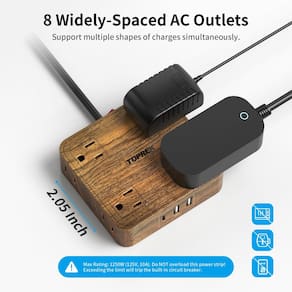 ?Estação de carregamento tudo-em-um?3 slots USB de carregamento inteligente e 8 tomadas bem espaçadas com um interruptor liga/desliga 2 em 1 e disjuntor com indicador LED que se desligará automaticamente se estiver sobrecarregado. Alta eficiência para carregar telefone, Airpods, fones de ouvido, smartwatch, alto-falante bluetooth, controlador ps4, tablet, computador, laptop, TV, abajur, impressora, scanner e alguns outros dispositivos elétricos.