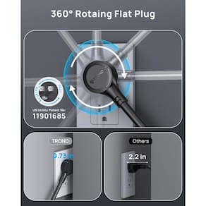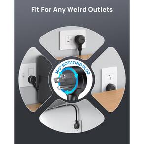 - Plugue plano rotativo de 360°: o design de plugue plano rotativo de 360° pode caber em qualquer plugue e ser inserido perfeitamente em qualquer ângulo (espessura de 1,9 cm). Prático para usar em áreas confinadas. Patente Utilitária dos EUA No. 11901685. Feito de cobre puro 14AWG, o cabo de extensão de 1,5 m é resistente e tem melhor capacidade de carga de corrente (15a).